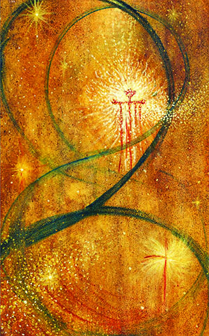 At what point do we cease to be who or what we were and become something different? The overwhelming content of Cosmic Gardens is one of the enigma of equivocal forces, the unsettling quality of a captured moment in eternal flux. The paintings slip between image and abstraction, control and abandon, lines and seeping forms. All provide a sense of looking into the universe to an unknown infinity, a liminal state of life, death and whatever lies beyond.